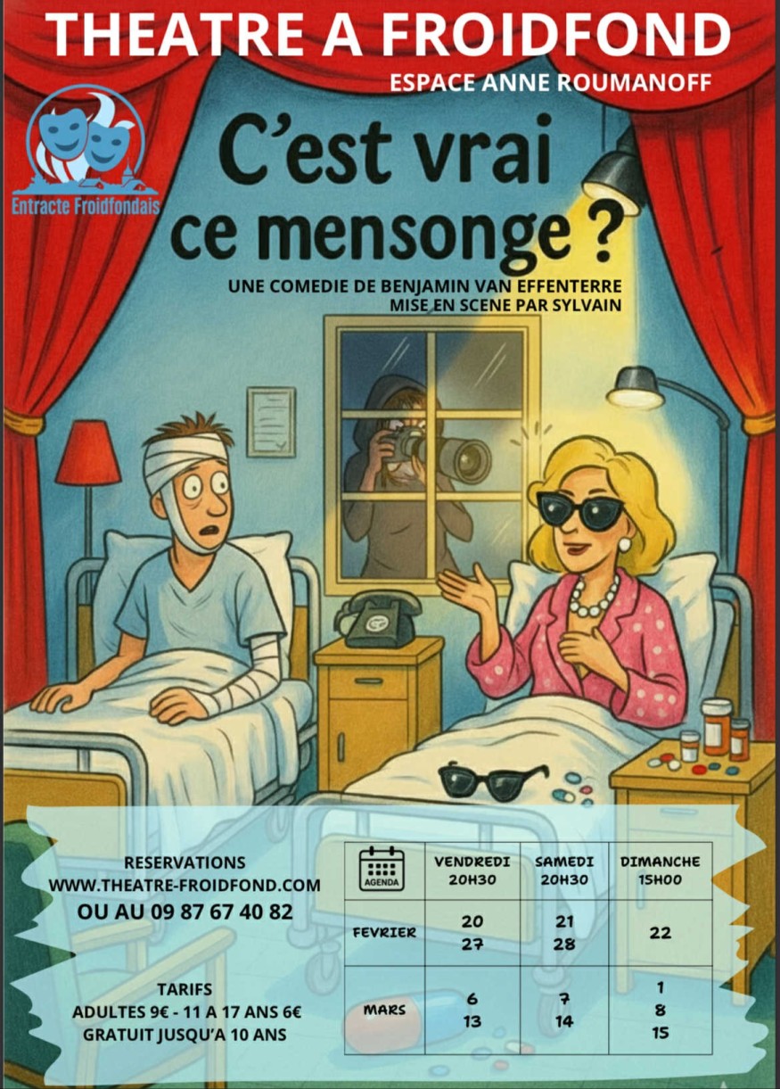 Une billetterie est ouverte pour le nouveau spectacle de l’Entracte Froidfondais, qui joue tous les week-ends du 20 février au 15 mars, « C’est vrai ce mensonge », à l’Espace Anne Roumanoff.