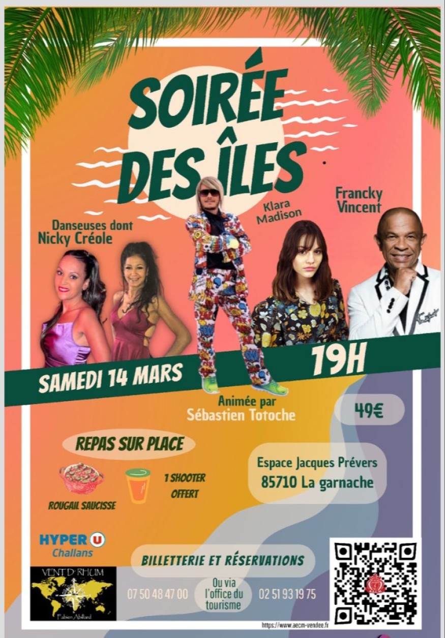 Billetterie ouverte pour la "Soirée des îles". De la musique, de la danse et dîner aussi, à l’Espace Jacques Prévert de la Garnache, le samedi 14 mars.