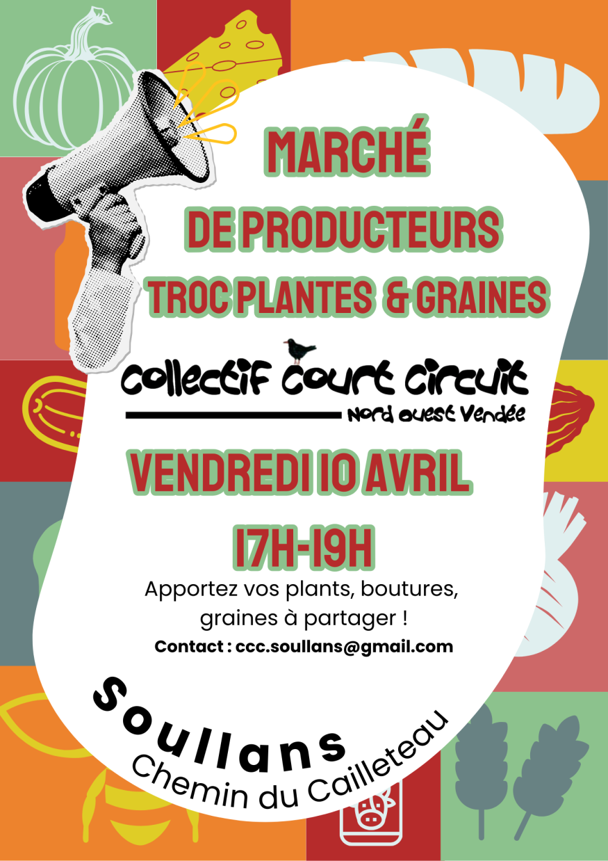 Ce vendredi se tient un marché de producteurs, avec troc plantes et graines, à Soullans, sur le site du dépôt du collectif Court circuit Nord-Ouest Vendée, chemin du Cailleteau.