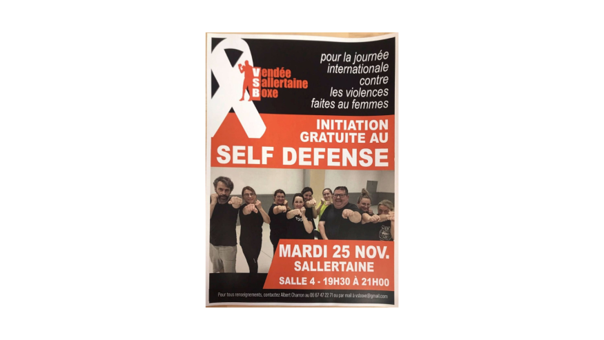 A l'occasion de la journée internationale contre les violences faites aux femmes, Vendée Sallertaine Boxe organise une initiation au Self Défense.