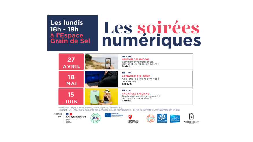 Sans inscription. Renseignement Gaëtan Dallaine 06.72.06.84.12 ou conseiller.numerique@ville-noirmoutier.fr