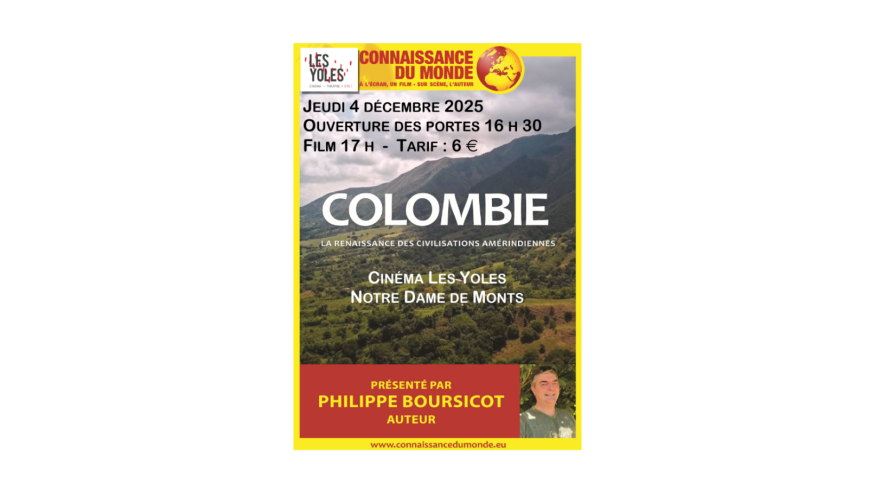 Le jeudi 4 décembre, assistez au film : Colombie, la renaissance des civilisations amérindiennes. L'auteur Phillipe Boursicot sera présent.