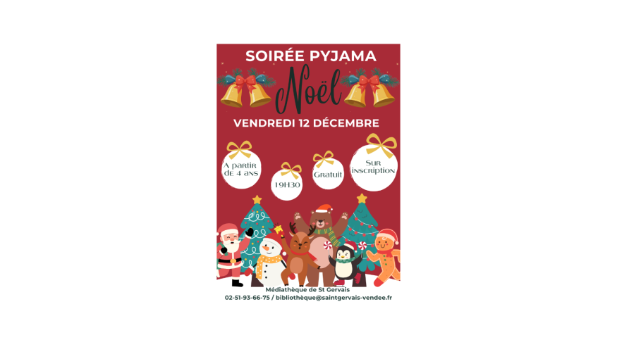 Le vendredi 12 décembre à 19h30, accompagnez vos enfants munis de leur pyjama ou déguisement, oreiller et doudou car vous êtes invités à écouter des contes et histoires.