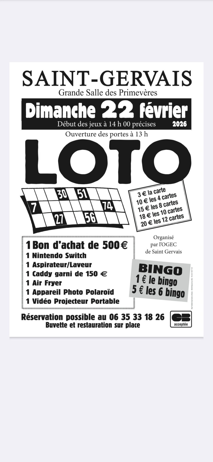 Jouez au loto, salle des Primevères, à Saint-Gervais, le dimanche 22 février.