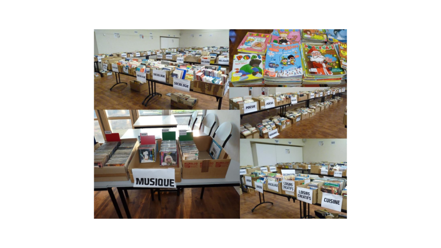 7800 documents sont à vendre au tarif de 1€ (CD, romans adulte, livres jeunesse, BD, documentaire...).