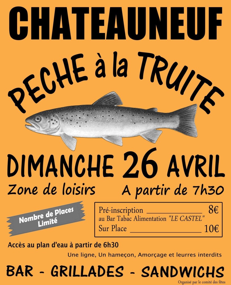 Comme chaque année, le Comité des fêtes de Châteauneuf organise sa pêche à la truite. C'est ce dimanche 26 avril, dès 7h30.