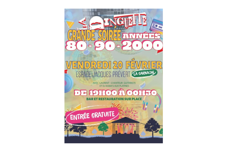 Nous vous informons que le Banquet d’Hiver ne pourra finalement pas avoir lieu, faute d’un nombre suffisant de réservations. Nous avons toutefois souhaité rebondir rapidement en proposant un autre événement le même soir, voici la description si vous souhaitez communiquer à nouveau sur notre événement : - Une soirée gratuite - Espace Jacques Prévert – La Garnache - De 19h00 à 00h30, le vendredi 20 février Au programme : DJ Kama’s (années 80, 90, 2000) Le même chanteur et guitariste que prévu initialement avec reprises des plus grands titres qui......