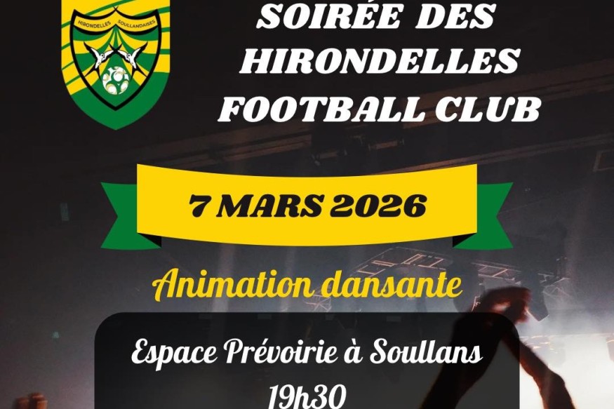 Une soirée dansante se prépare, avec repas autour d’une paëlla, le samedi 7 mars, à l’Espace Prévoirie de Soullans. C’est la soirée des Hirondelles Football Club, contact : 06 14 53 01 91. Tarif adulte 23 euros, enfants 13 euros....