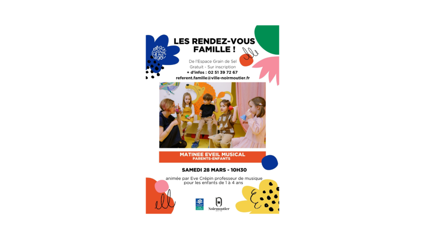Une matinée éveil musical (parents-enfants), le samedi 28 mars à 10h30.