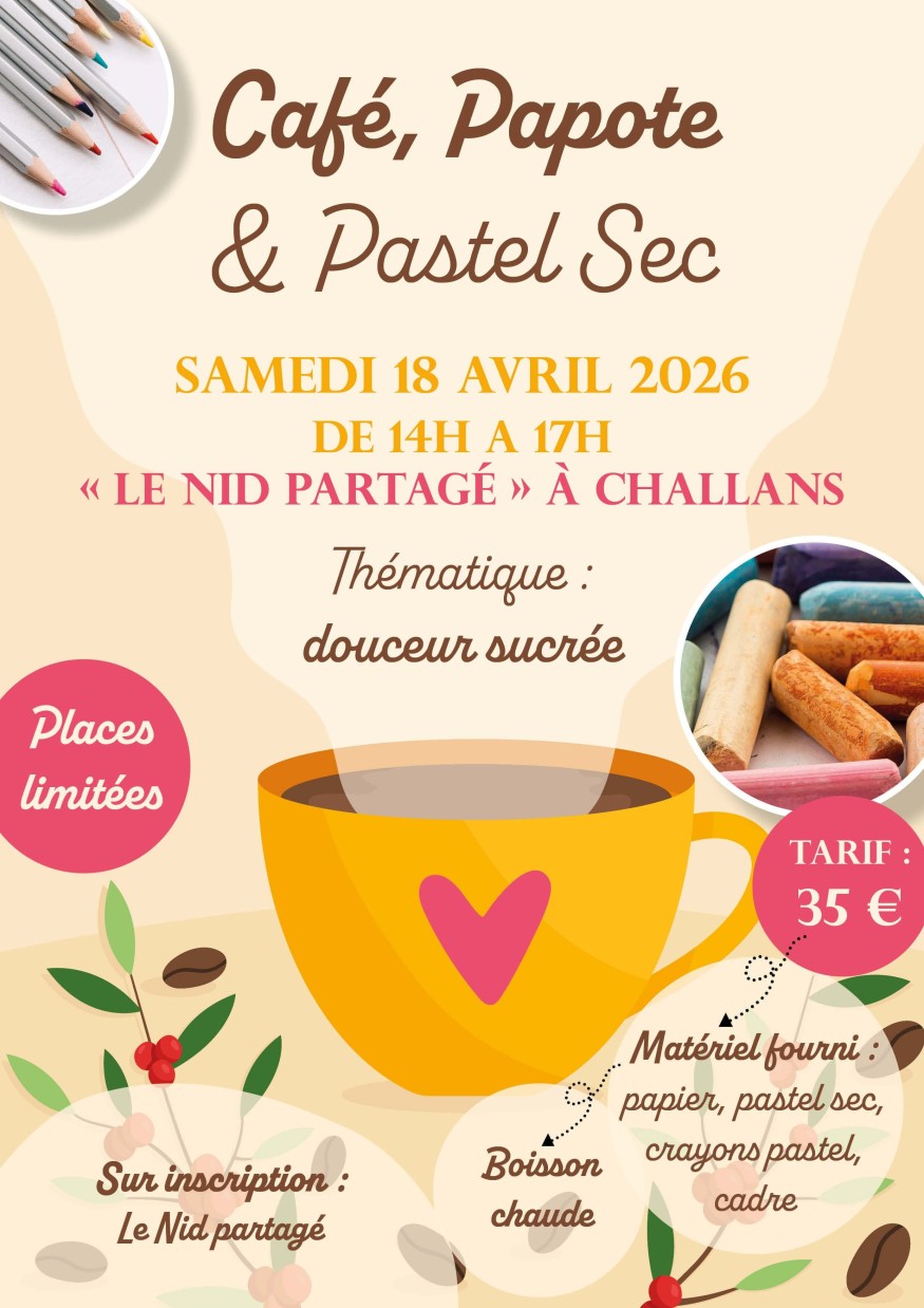 Joli rdv "Café, papote et pastel sec », samedi 18 avril, de 14h à 17h, au Nid partagé à Challans, avec Sabrina Pierre, graphiste et dessinatrice.
