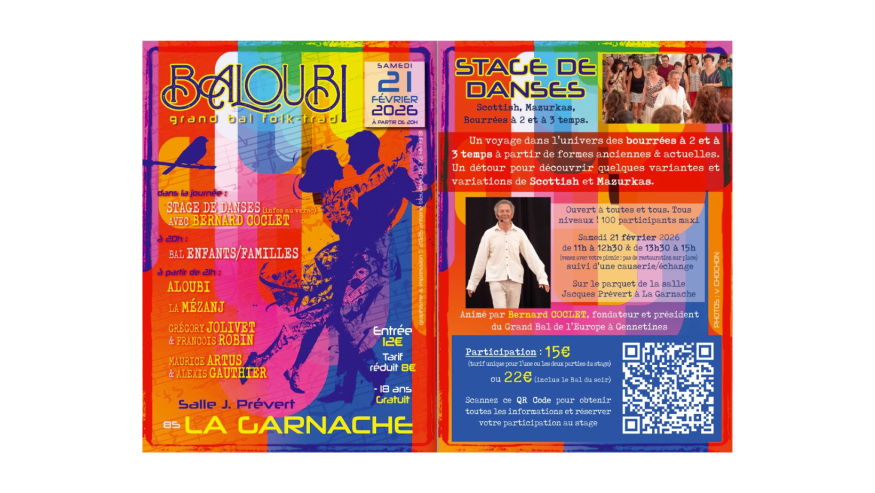 Une journée dansante, le samedi 21 février, avec un stage de Scottish et Mazurkas ainsi que des bourrées à 2 et à 3 temps.