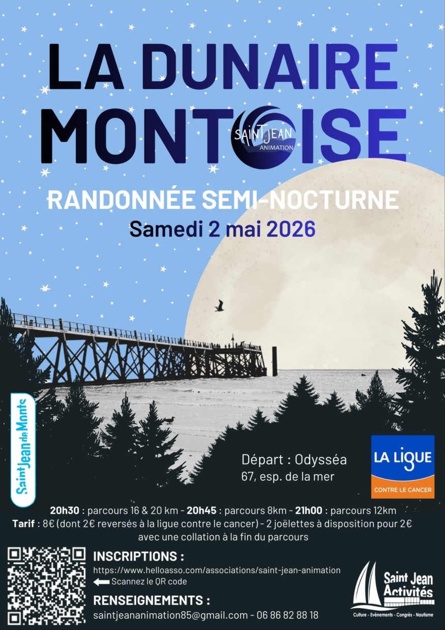 Samedi 2 mai, Saint-Jean Animation organise la 29e édition de la Dunaire montoise, randonnée en semi-nocturne toujours très prisée. 1700 marcheurs ont participé l’an passé ! Nous appelons le président de l’association : Benoit Raimbault.